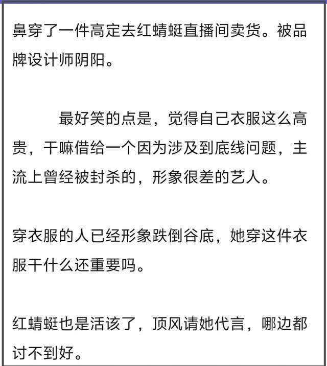 当高定品牌盘算推算师得知baby穿戴自家衣服去带货直播之后,立马发了火,明确暗示从未授权baby穿戴他家高定参预营业活动,相等是宣传cheap shoes(低价鞋子),嫌弃之意言外之意。