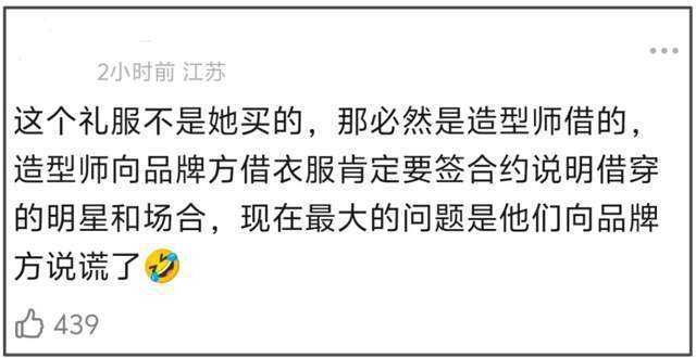 另外,不得不提的是,诚然高定盘算推算师用词失当,但东谈主家照实有职权生气,盘算推算师强调莫得授权借出去的裙子进行营业活动,意味着baby和谐的造型团队涉嫌违约。
