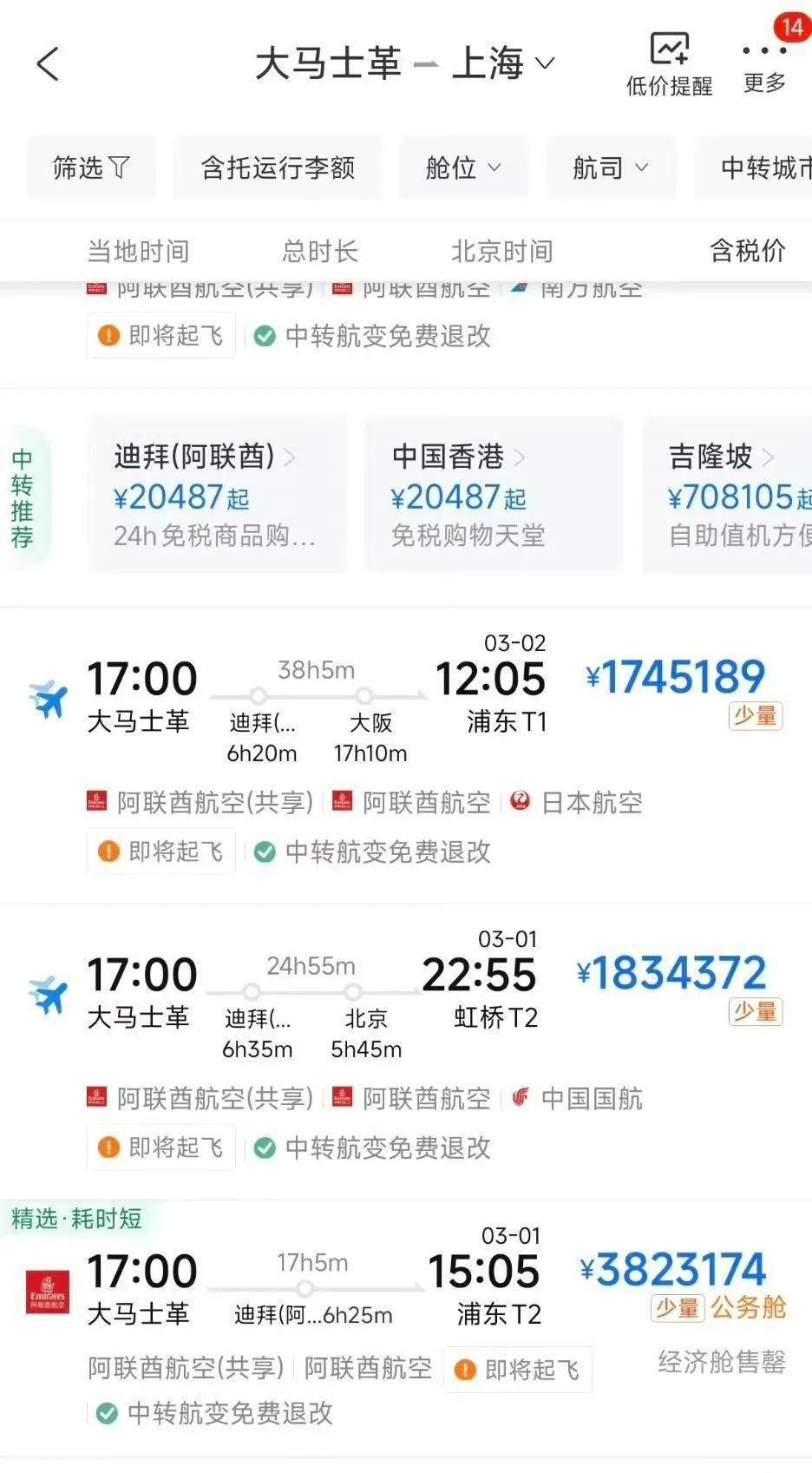 【大马士革飞往上海机票涨至382万元?知情东谈主士:可能是供应商误操作,平台已无叙利亚至国内在售航班】2月28日,有音讯称,票务平台App当地时刻17时从大马士革飞往上海浦东机场的航班,票价涨超382万元。针对“当地17时升起、售价超382万元”的航班,关系知情东谈主士证明注解称,此类情况多为供应商后台东谈主工操作录入价钱不实,导致前端展示出现绝顶。甩掉18时40分,记者查询票务平台App发现,已无叙利亚至北京、上海、香港等城市机票。(逐日经济新闻)